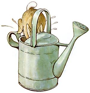 And rushed into the tool-shed, and jumped into a can. It would have been a beautiful thing to hide in, if it had not had so much water in it.
